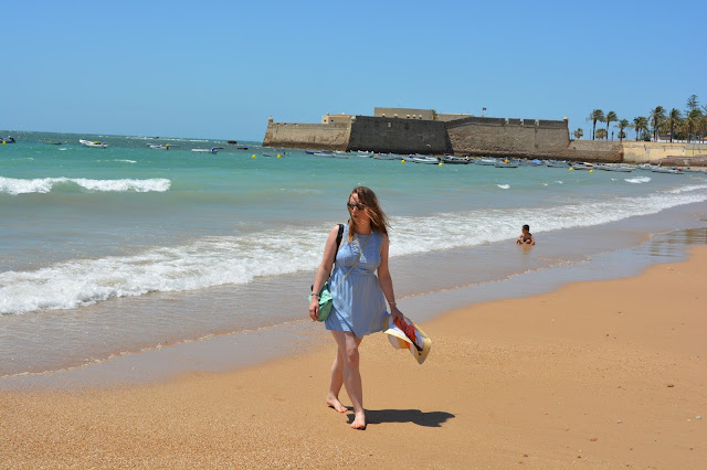 Kadyks to piękne miasto z całkiem niezłymi zamkami do odwiedzenia (wstęp darmowy), zaś upał nie jest tak odczuwalny, bo bryza robi swoje. Piasek jest jasny i delikatny, aż chce się po nim dreptać! W sumie to muszę się przyznać, że spaliłam sobie nogi na plaży, bo “tylko chwilę posiedzę” a że chłodno mi było to dopiero w Sewilli poczułam jak bardzo świńskie (czytaj różowe) mam nóżki. Po zdjęciach zresztą widać, że bliżej mi do mleka niż kakao…